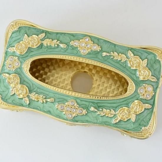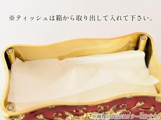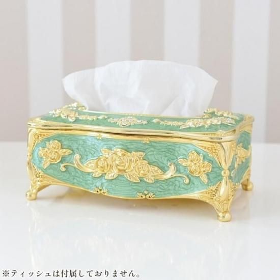 お部屋に置くだけで気品あふれる雰囲気に。まるでヨーロッパの宮廷を思わせる、ゴールド装飾とバラのレリーフが美しいティッシュケース。