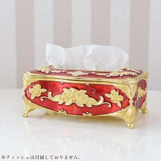 お部屋に置くだけで気品あふれる雰囲気に。まるでヨーロッパの宮廷を思わせる、ゴールド装飾とバラのレリーフが美しいティッシュケース。